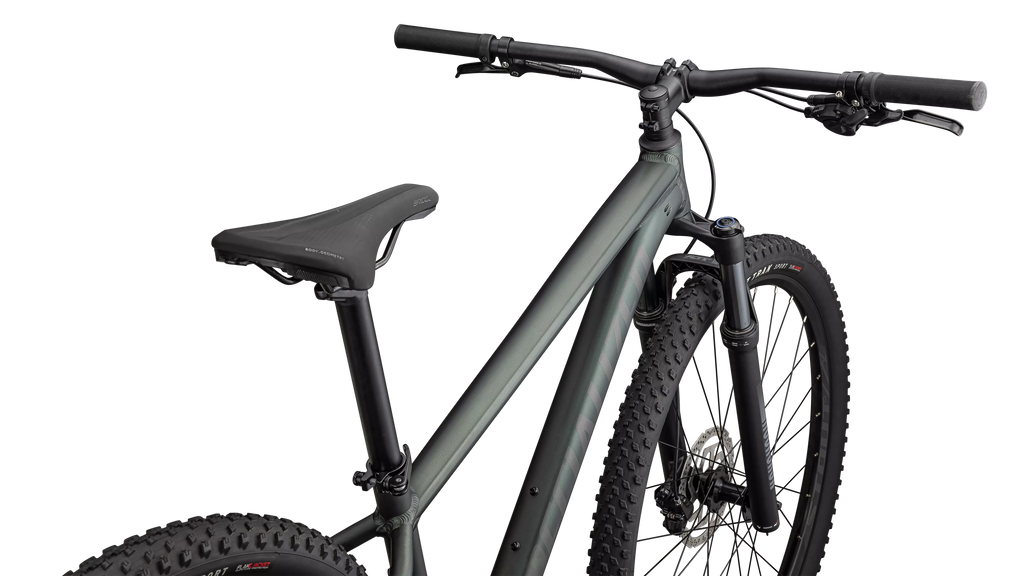 A heart of gold, presented in our lightweight yet durable Premium A1 Aluminum, the Rockhopper’s butted aluminum frame features hydroformed top and downtubes to keep weight low and strength high, all while providing increased standover clearance, slick internal cable routing, and dropper-post compatibility.