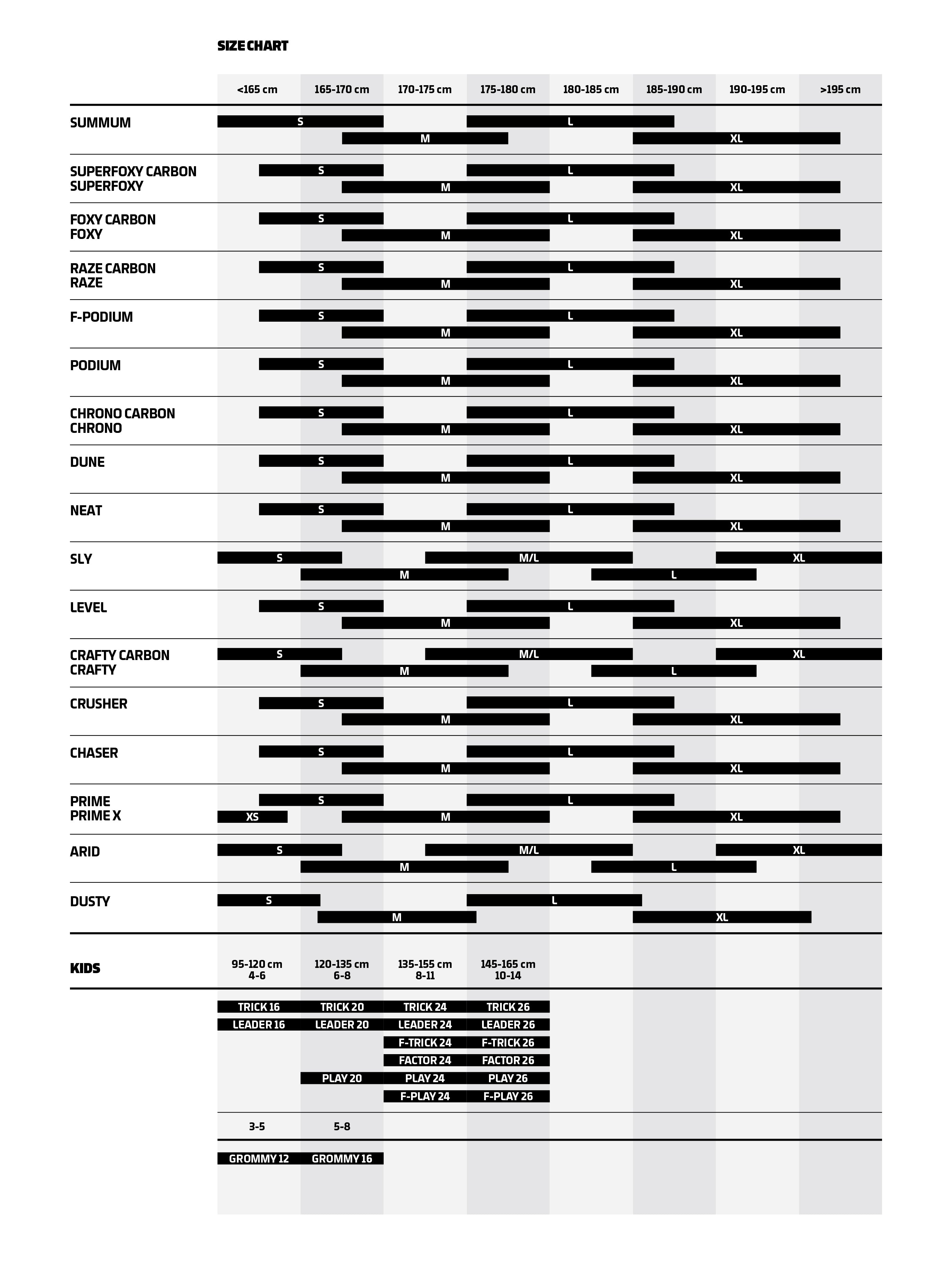 S: 410mm / M: 450mm / ML: 480mm / L: 510mm / XL: 540mm